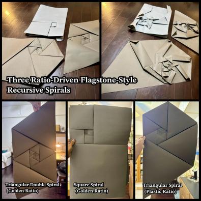 Three Ratio-Driven Flagstone-Style Recursive Spirals