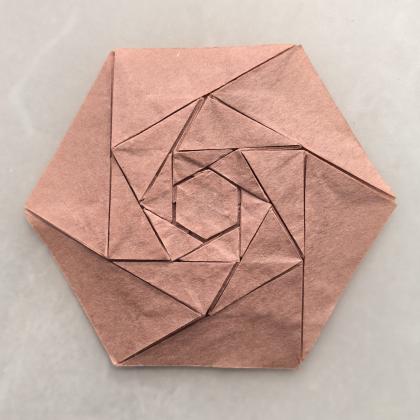 A set of tessellated origami with spiral fractals, theoretically extendable to arbitrary polygons, has been successfully accomplished in four forms: triangles, squares, and hexagons. The term "Gui Yuan" (return to origin) refers to the property that the center of the model ultimately converges to a regular polygon.