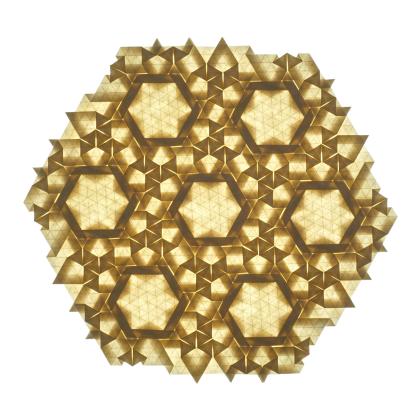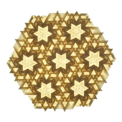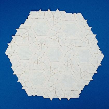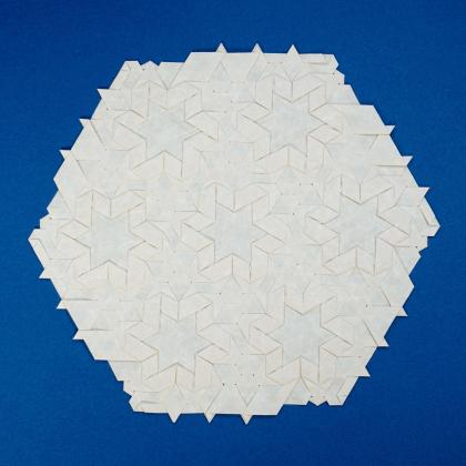 One particularly appealing feature of this pattern is the star that appears in the central hexagon when the piece is backlit.