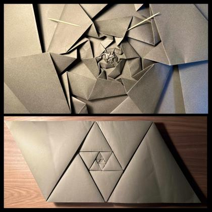 This submission consists of a group of three closely related works, developed as a systematic exploration of ratio-driven recursive structures within a flagstone-style origami framework.