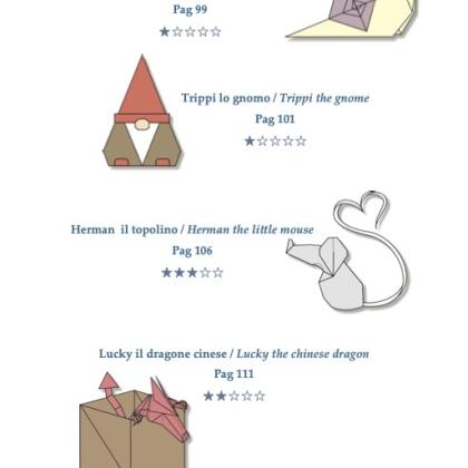 Favole di carta is a book to discover the technique of Modular Figurative Origami. In it, you will find tips and tricks to start trying yourselves with this original way of folding paper. You will be guided step by step though the discovery of this technique and in the creation of your first models realized with Modular Figurative Origami. Diagrams of a selection of 20 original models will offer you a cue to develop your creativity and start creating your own work.