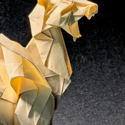 Folded from a single sheet of paper, this artwork is based on a sculpture of a traditional Chinese mythical beast. It embodies the essence of "A great man’s transformation is like a tiger’s—undeniable even without divination" from The I Ching•Ge (Revolution). I have also made personalized revisions to the original sculptural design, echoing the line: "A wise man’s profound transformation eludes the foolish; he once seemed no different from an ordinary mortal."