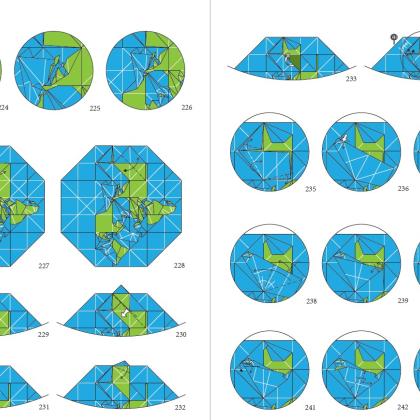 Through folding alone, the designer succeeds in drawing the surface of the globe, with major continents and regions that are clearly identifiable, correctly positioned, and legible on a closed volume.