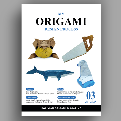It contains a total of 4 works of which 2 have diagrams and the other 2 have a crease pattern (CP), a short interview to learn more about the artist along with a gallery of their works.