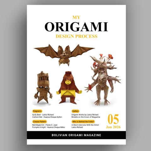 It contains a total of 4 works of which 2 have diagrams and the other 2 have a crease pattern (CP), a short interview to learn more about the artist along with a gallery of their works.