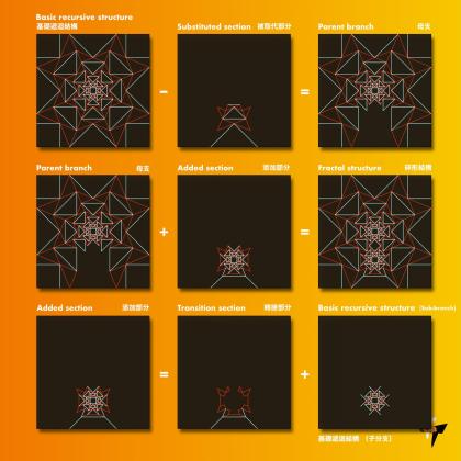 To demonstrate the assembly-level freedom inherent in a metarecursive structure, I deliberately insert sub-branches of different hierarchical levels at asymmetric locations. This choice results in a final form with a more organic overall character.