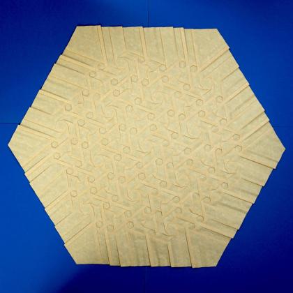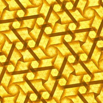 Infinity Calling has a fascinating pattern of lighter and darker bars 'interweaving' with infinity symbols in the gaps, all of which is created using only open hexagon and closed triangle twists.