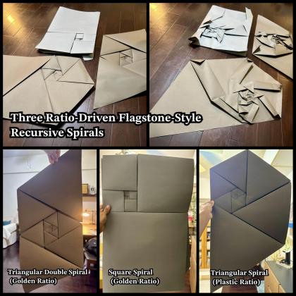 This submission consists of a group of three closely related works, developed as a systematic exploration of ratio-driven recursive structures within a flagstone-style origami framework.