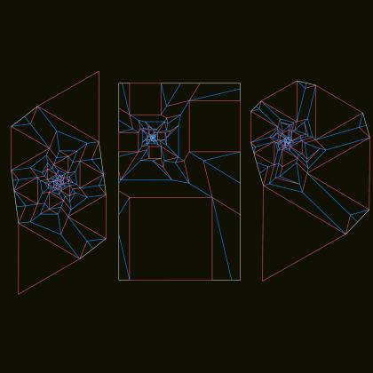 Under the combined constraints of ratio-driven recursion and flagstone-style geometry, this series achieves a mathematically optimal configuration in terms of paper utilization. To realize this condition, I employed GeoGebra to analyze the geometric relationships between adjacent flagstone units, determining the minimal admissible spacing allowed under the given ratio constraints. This extremal configuration was then used as the generative rule for all three structures.