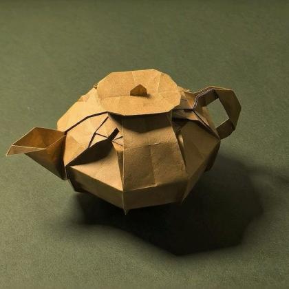 This teapot is folded from a single sheet of paper. A classic vessel in traditional Chinese culture, the teapot embodies Zen philosophy and the joy of tranquil leisure. This origami work is a flawless piece with no weak angles, and can be admired from every perspective.