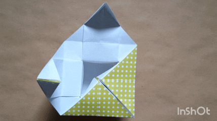 I was pleased with a variation of a box I discovered recently which offers an unusual and easy closing method I'd never seen before. It consists of folding 3D triangular wedge shapes on 4 flaps which then meet in the centre to form a tightly closing lid.