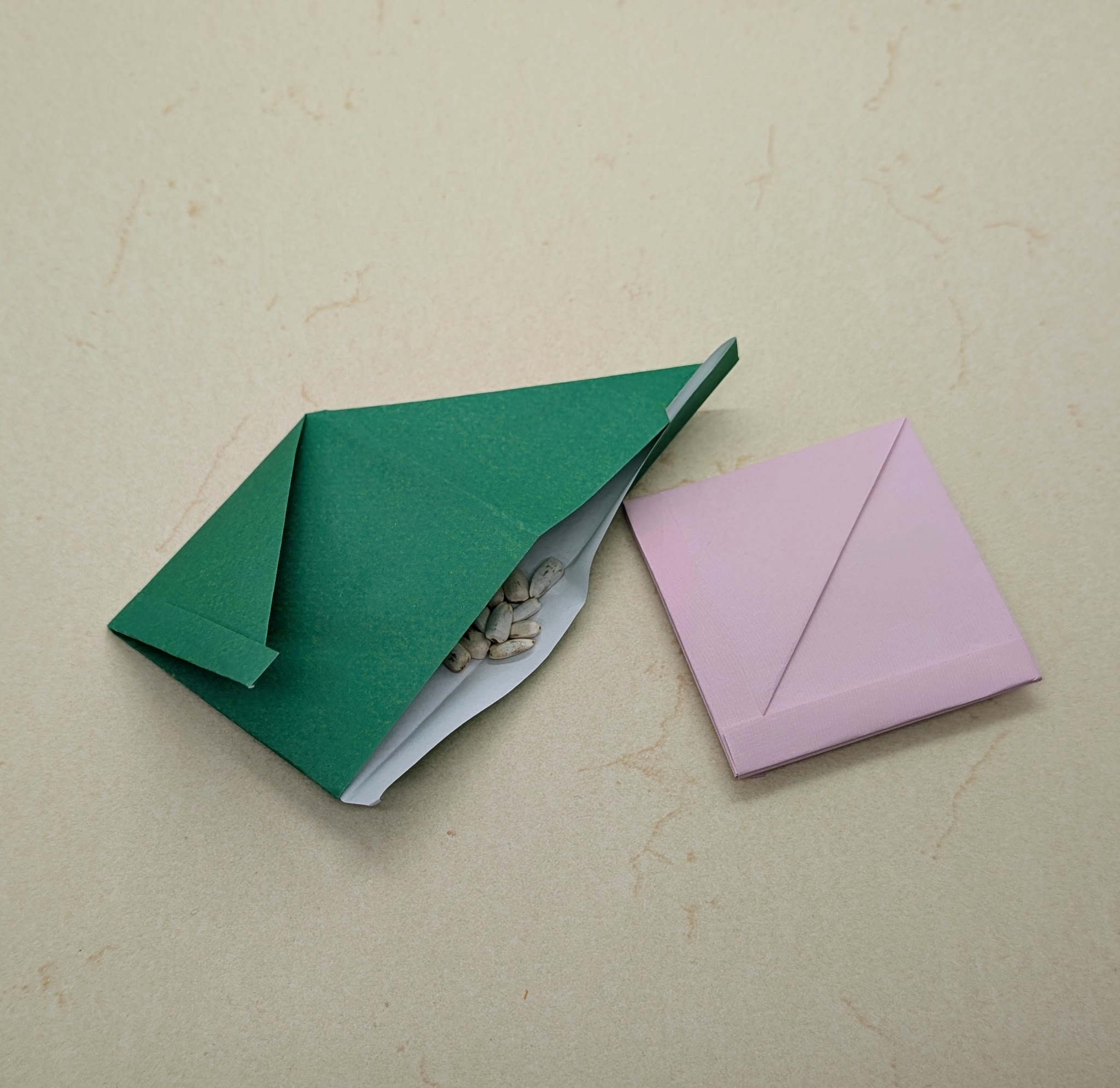 Imagine yourself on a train to Shanghai. You just bought some nuts in their shell, and it feels like snack time. Alas! Where are you going to put the shells? You have no bag, but you do have 15 cm kami. Of course.