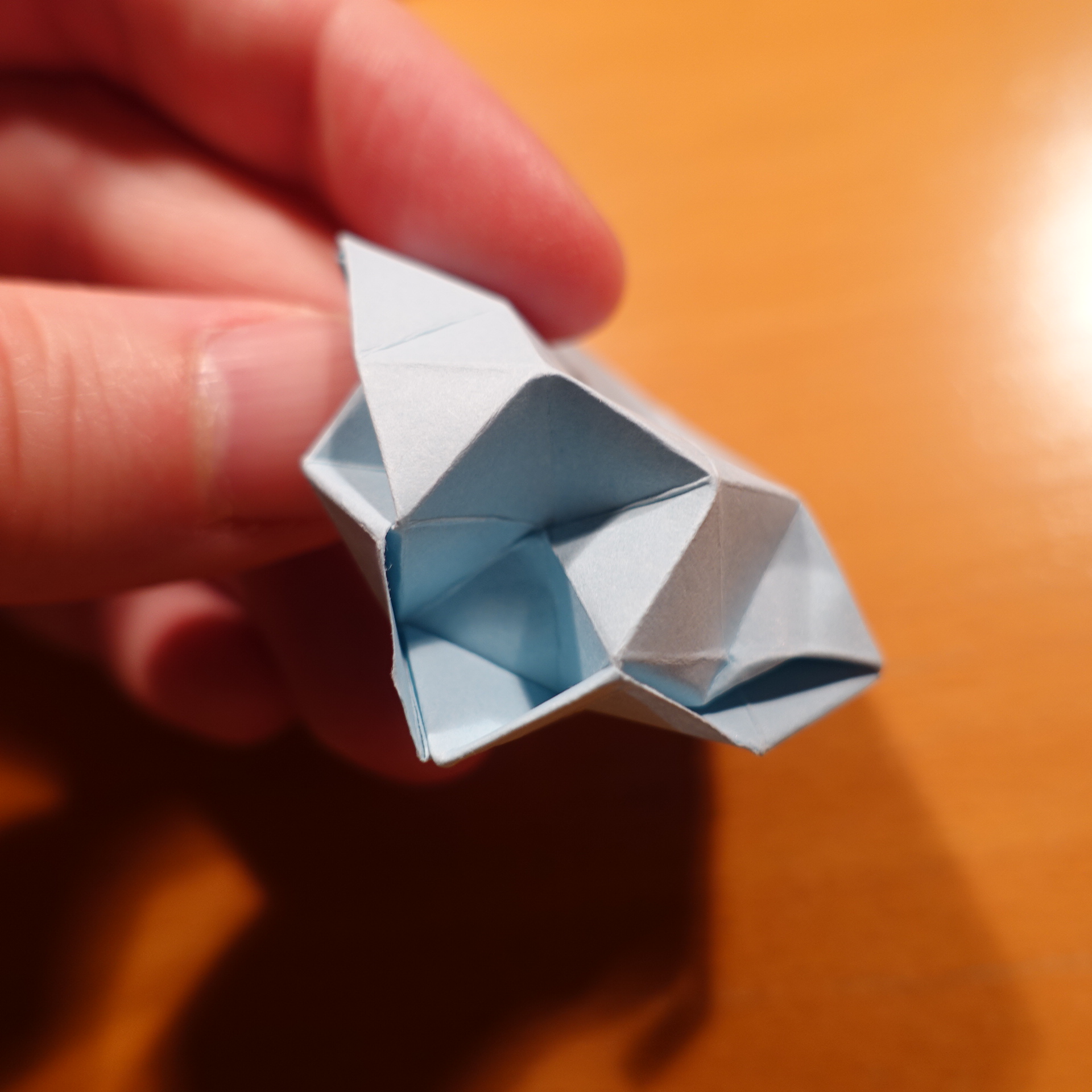 When you fold this model, it is just a flat "disc" which you then pop up in the last step, creating an elegant vase. I designed this model shortly before the challenge, but I think it fits the theme well, and I really like the folding sequence. Recent, so the pictures are a bit rough.