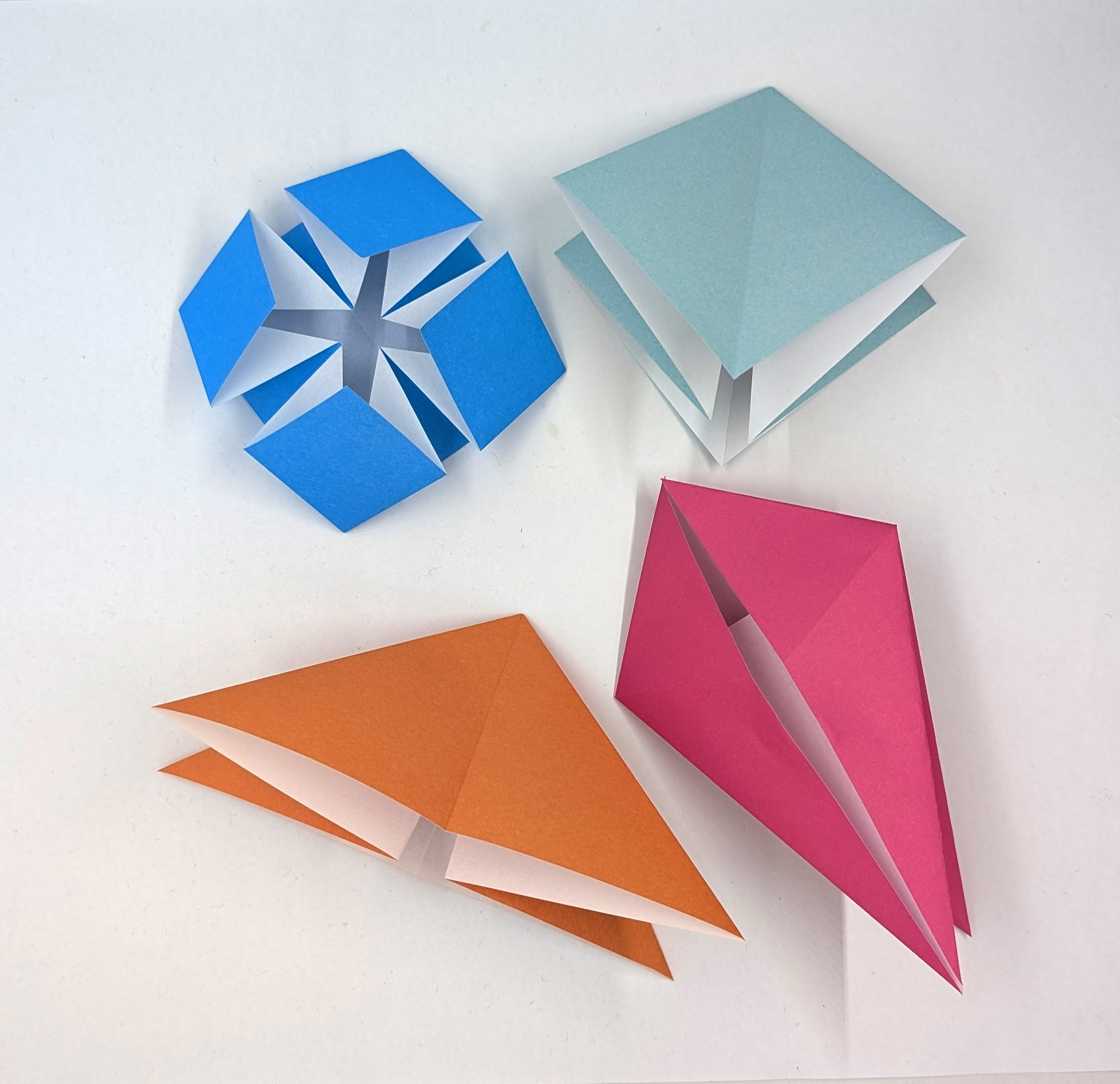 We talk about the preliminary base, the waterbomb base, the fish base, the pig base, the blintz base, and the windmill base.