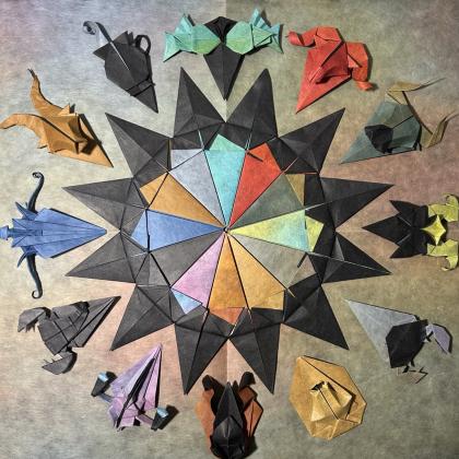 I’m not a very prolific origami author, and my portfolio features less than 50 models, sometimes organized in series. Despite my profession, and rather sadly, I’m not particularly interested in the mathematical aspects of Origami, my favorite genre being figurative origami, particularly animals, and fantasy / mythology themed models. My latest design is a whole Western Zodiac, including an ecliptic star to display the signs. I’m currently working on a Chinese Zodiac.