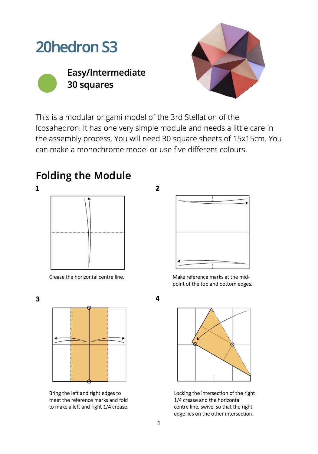 One simple module is used to create this rare origami subject. Fully diagrammed instructions for making this model.