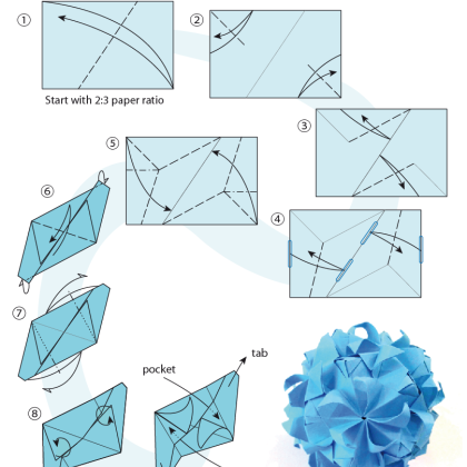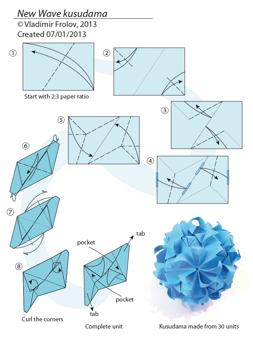 A Sonobe-like modular with curls, made from 2 : 3 rectangles.