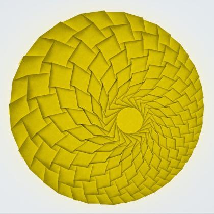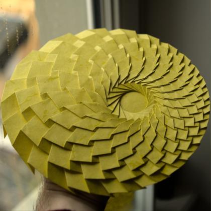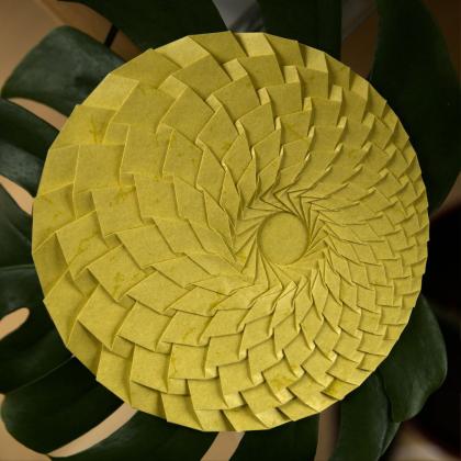 Inspired by a way smaller (and symmetric) version shared in a workshop. ø24cm, from a scored irregular sheet of elephant hide paper.