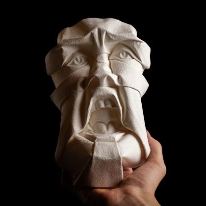 Wet folding is one of the oldest techniques in origami yet there are still so many more possibilities left untouched. A very interesting balance is needed between details and smooth curves, between realism and caricature. Meanwhile, the quality of a piece can stand or fall with a single thoughtless fold. This work is part of an ongoing series where I explore the immense amount of nuances that can be made within the human face.