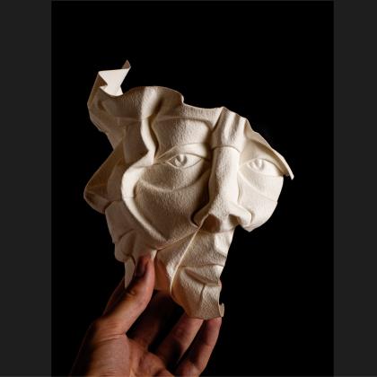 I recently fell in love with the art of wetfolding, experimenting with the soft curves and levels of abstraction has pulled me out of a spiral of pushing more details into every single sheet. I have become obsessed with finding all the subtleties that can breathe life, emotion and relationships into blank sheets, just like the quiet sadness portrayed in this piece.