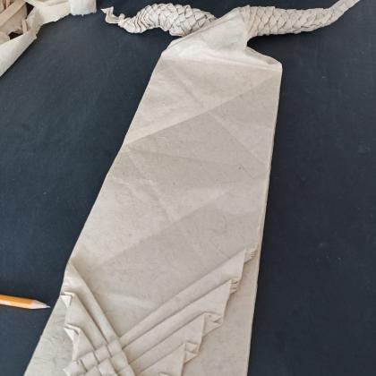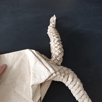 In this model, to avoid using a non-square sheet and time-consuming pre-creasing, I used a simple waterbomb base with 3 open-sinks to get four long flaps united in the middle, then I added simple pleats in a linear orientation and united two corners to shape the body. The result is an elegant, realistic snake that efficiently uses paper and time.