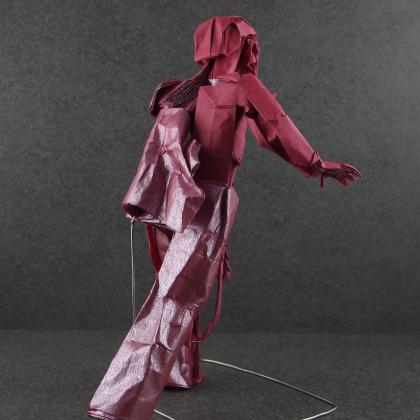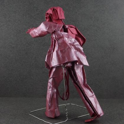 Some more technical details: the model is folded from a 50x50cm of tissue foil paper, mostly for the realistic sheen given for the guts. Cuts are used for the guts, but they are linked to the rest of the model during the entire folding process. Once the zombie is folded, the guts are shaped and stuffed inside his abdomen. Gruesome.