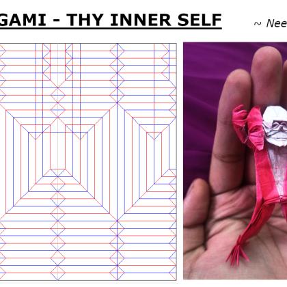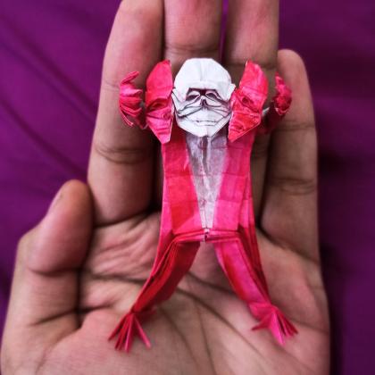 Designed and folded by me from a single uncut square sheet of ~ 25 cm bicolored tracing paper (Red/white)