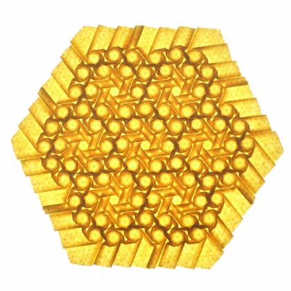 Desert Rose creates incredible complexity while using only two simple twists (open hexagon and closed triangle twists), which echoes the incredible complexity made from simple elements in nature.
