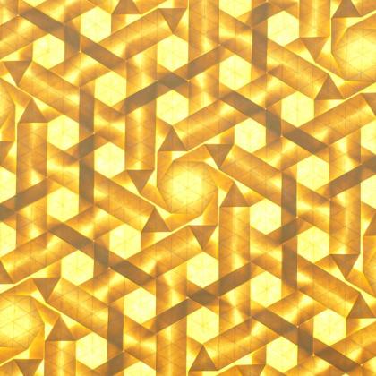 This pattern can be repeated infinitely and the photos were taken with light shining through the paper, creating darker areas where more layers accumulated during the folding process.