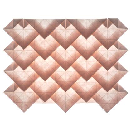 The method that I introduce in this new tutorial is to fold all of the diagonals while gridding and then fold the pattern one interaction of pleats at a time, in stripes that progress across the paper.