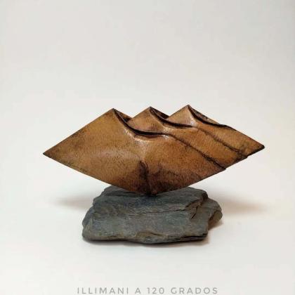 Taking into account the realistic-abstract axis, the nominator decided to include the present work in the second half. Some abstract works have no referent. Others might have one, but they portray them in a rather indirect manner. The following work by Guarachi is his representation of an important mountain in Bolivia, which is far from being direct and realistic.