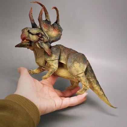 I mainly made various adjustments to the head of this dinosaur, and I consulted many images to make it more realistic and close to the reconstruction, including adjustments to the neck shield, the horns, the shape of the mouth, the shape of the eyes and the length of the head. After shaping, it is colored to achieve a simulated effect.