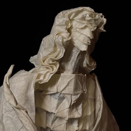 This is an interpretation of Eric Joisel's Legolas. Starting with a rudimentary rough crease pattern sketch found in the book "The Magician of Origami", the model was reverse-engineered and shaped using limited reference material. The model was folded with a 75x75cm sheet of Wenzhou rice paper treated with MC, and stands at a height of 30cm on a raised block. The entire folding process is documented through pictures for future reference and as a resource for origami artists who aspire to recreate this iconic masterpiece by Eric Joisel. Shaping was achieved mainly through wetfolding and using thick MC paste.