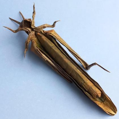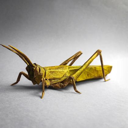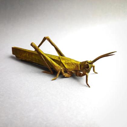 This grasshopper escapes using the traditional frog base to achieve a very realistic 3D result.