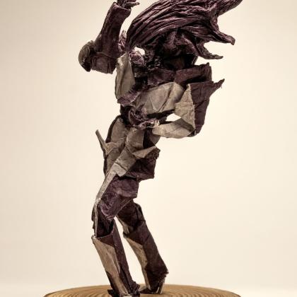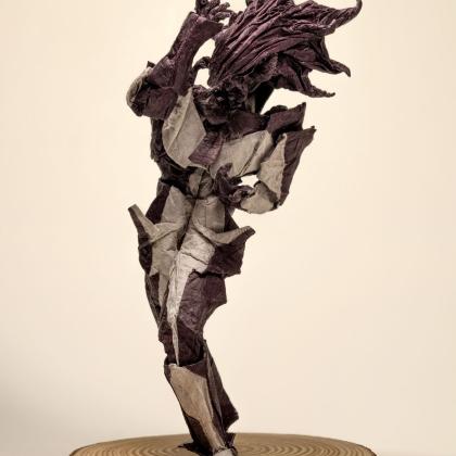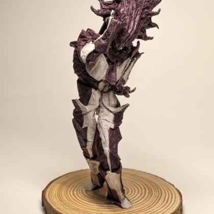 This design is completely freefolded. It actually started out as a half-finished base (and an unsuccessful attempt) of Kei Morisue's Tie Interceptor before I unfolded everything and tried to make my own design, instead of making merely an "interpretation" of it. Wings became arms and legs, what was supposed to be a tessellation turned into an organic, crumpled alien head, and I used the duo paper to create color changes on the rest of the body. The result is an alien fighter in a mech suit, wearing a tie. Hence the name, "Tie Fighter" :) I’m satisfied with how it turned out—a sci-fi blend of organic and mechanical.