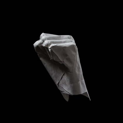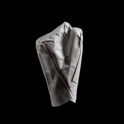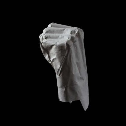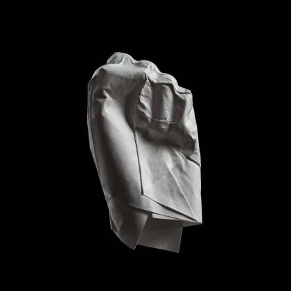 An origami mold of a fist. You can sense the tensed muscles as you see its contours. An expression of anger? Its title lets us know it is intended to hit something or someone. It probably is an expression of violence. But, what is its backstory? If we did know it, would we stand beside the owner of this hand? Would we instead reject that person? Just a few seconds before the punch—full of emotion, strain, and uncertainty—now frozen through this folded work.