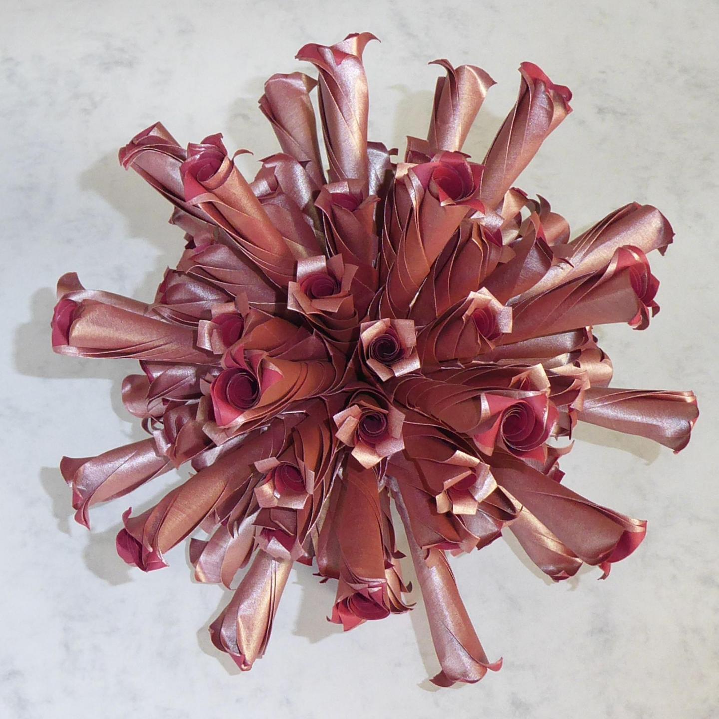 What does an origami artist confine at home at the pandemic time? Of course, fold a model of the covid virus. But such a model is a challenge if you want to maintain the geometry of the virus’ shell, its spikes, and mark the second (after the spikes) specific protein demonstrated at the surface of the shell. A good representation should satisfy several conditions:
